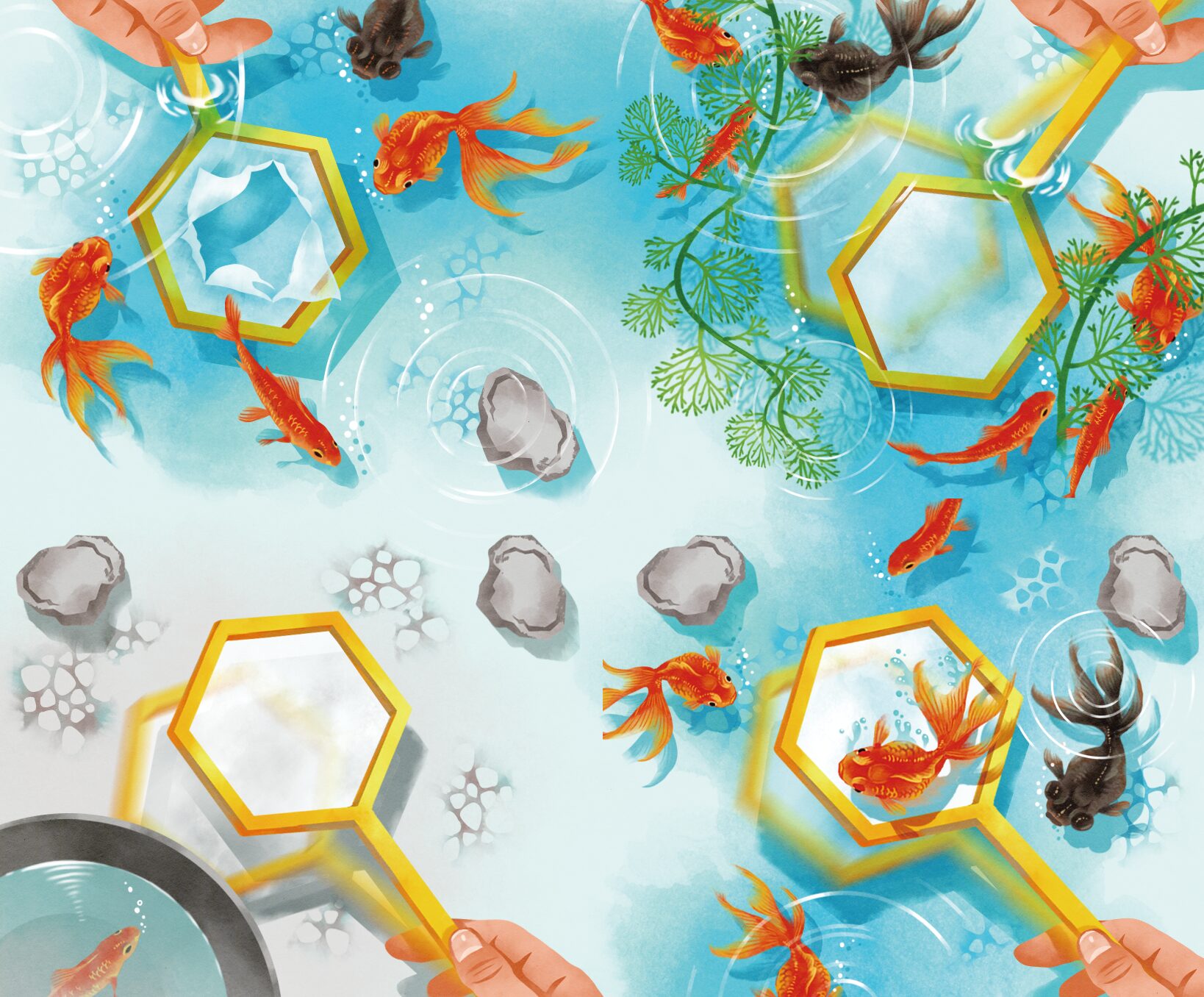 金魚すくいをモチーフに、水彩風の和色たっぷりのカバーです。