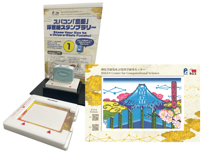 イベントで体験できる重ね捺しスタンプのデザイン面を制作しました!最後までスタンプを押すとスパコン「富岳」の浮世絵風ハガキが完成します!